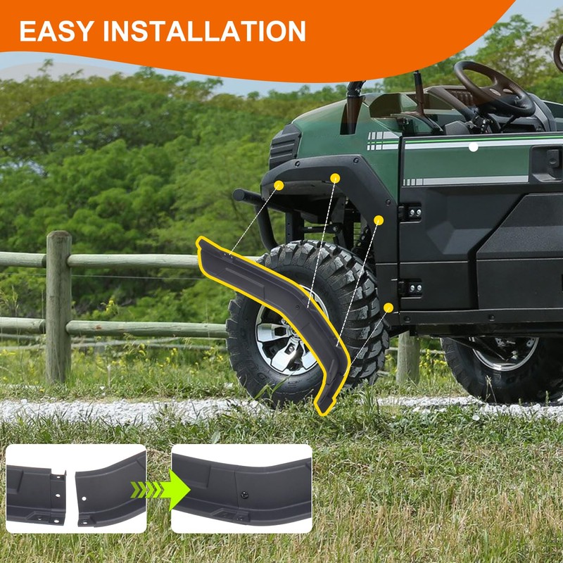 【Fit For】CUSAUTV Fender Flares are compatible with Kawasaki Mule Pro FXT FX DX DXT FXR 2015-2025. Please refer to the compatible list in the description