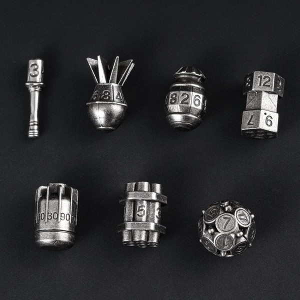Creative 7-Piece Metal Dice Set: Inspired by Tactical Aesthetics for Epic Game Sessions