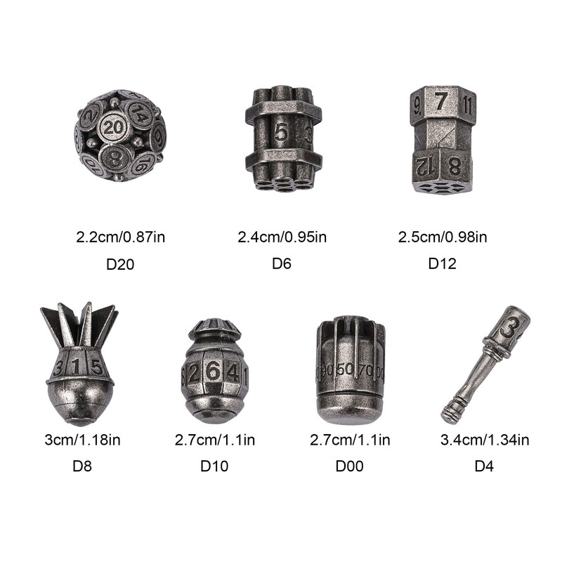 - Inspired by Tactical Aesthetics: Drawing inspiration from the sleek and modern designs of tactical gear, this 7-piece metal dice set offers a unique and striking look that will elevate your game nights.
