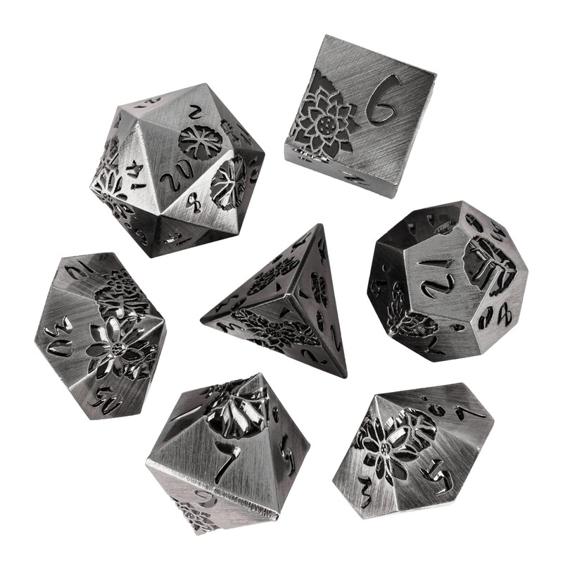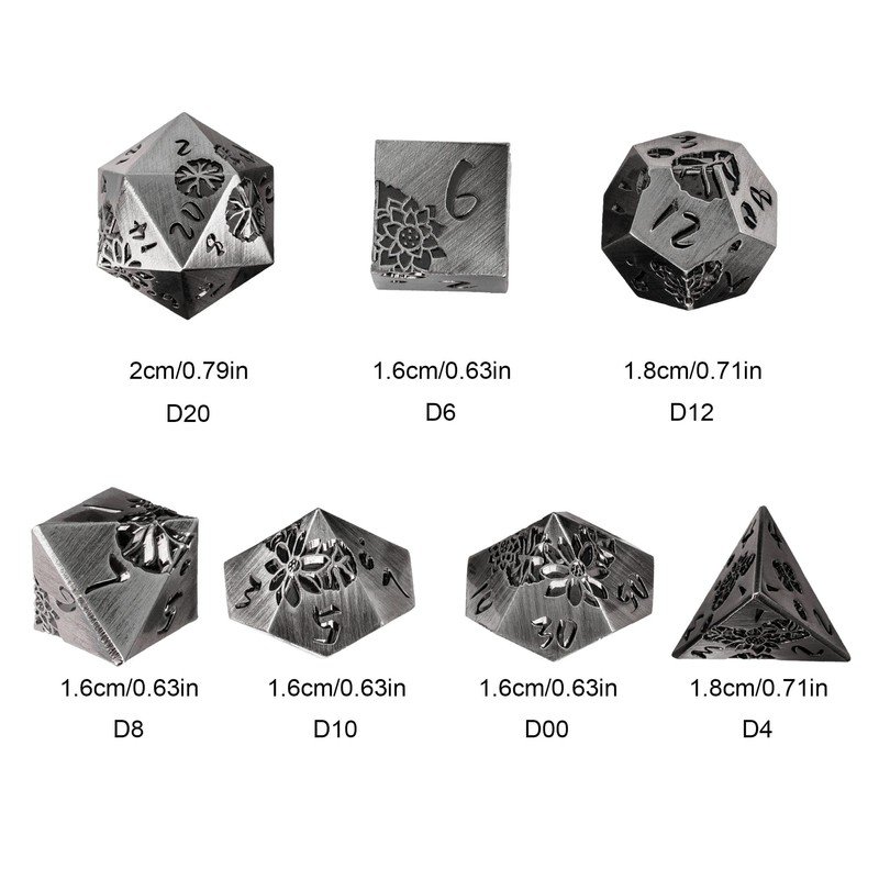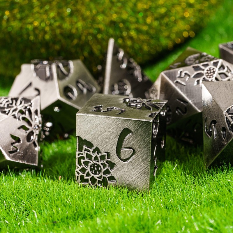 - 🌸Premium Craftsmanship🌸 Each die in this 7-piece set is expertly crafted from high-quality metal, offering a durable and luxurious feel that stands out in any gaming collection.