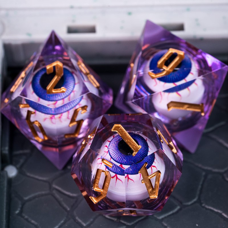 Cusdie Sharp Edges DND Dice, Death Peeping Eyes Liquid Core Dice, 7 PCs D&D Dice, Handcrafted Polyhedral Dice Set, for Role Playing Game (Purple Eyeball)