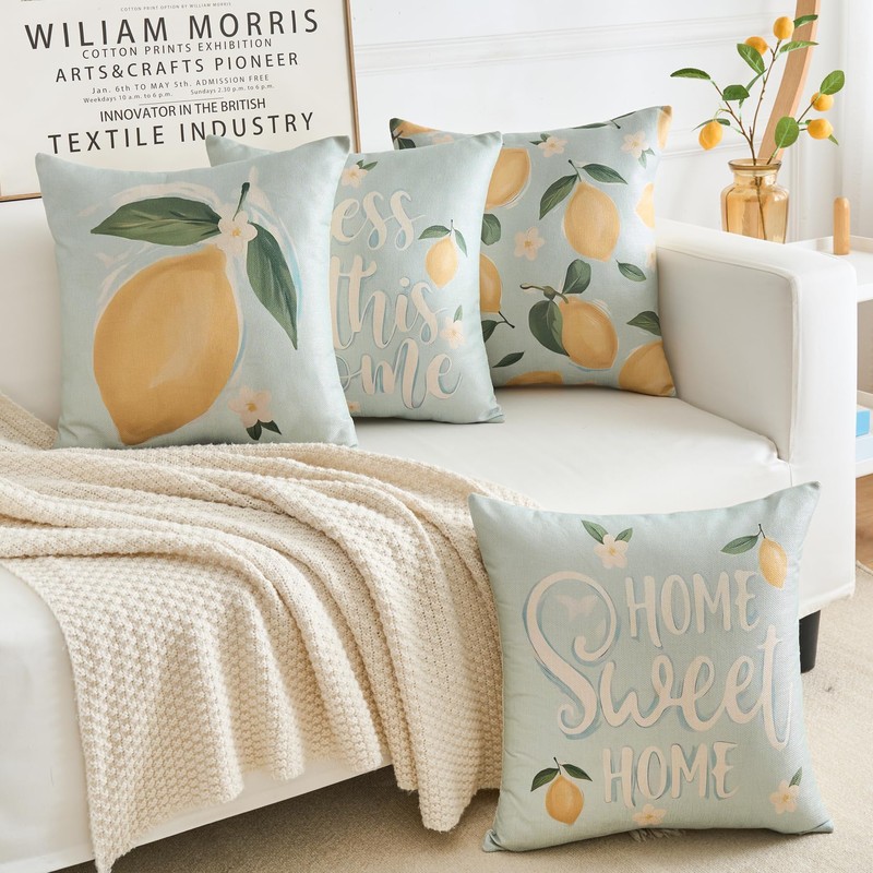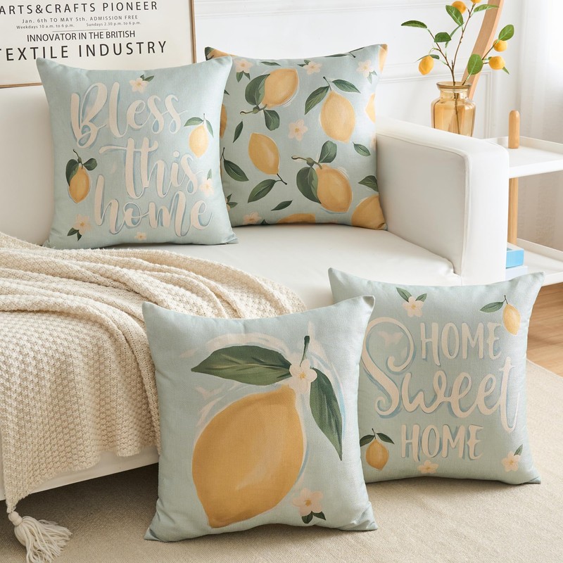 - Lemon pillow case: the bohemian pattern is combined with lemon, and the colors blue and yellow collide. The Bohemian cushion cover is decorated with lemon and full of vitality.