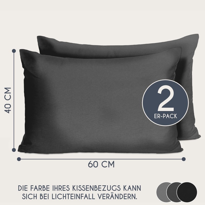 Cushion Cover 40 x 60 cm Renforcé Cotton (Set of 2) – Anthracite – Densely Woven with 57 Threads/cm² – Cushion Cover 40 x 60 cm – Oeko Tex Certified – Dreamzie