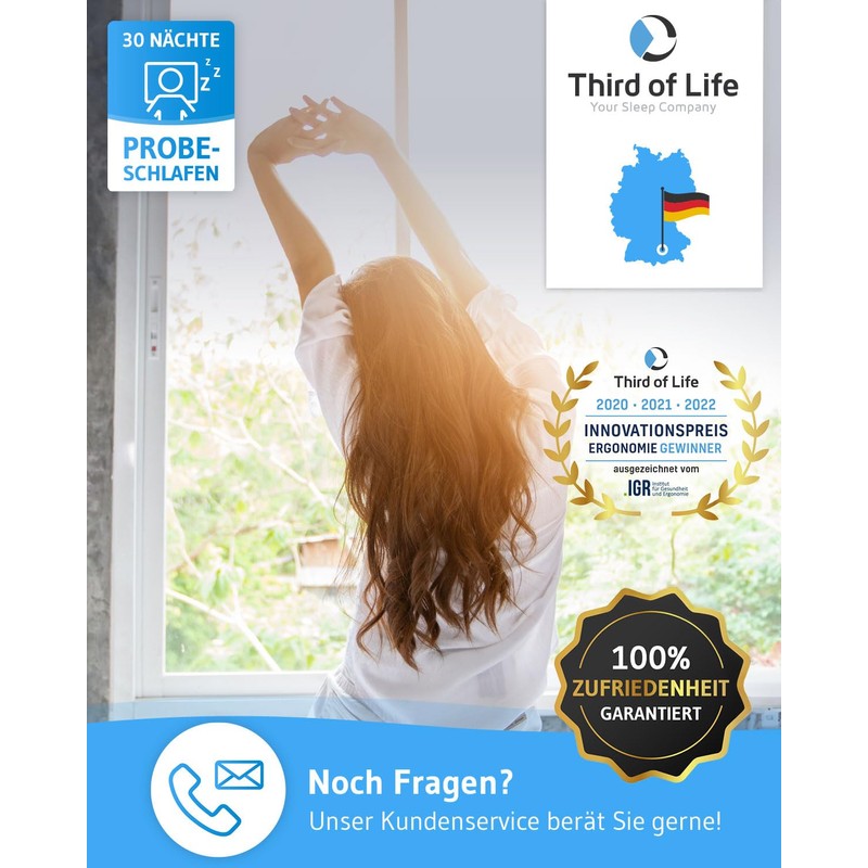 Third of Life stands for perfect sleep. Together with sleep researchers, we develop innovative products for a better sleep: functional sleepwear for a better sleeping environment, dietary supplement for better regeneration and thermoregulating pillows.