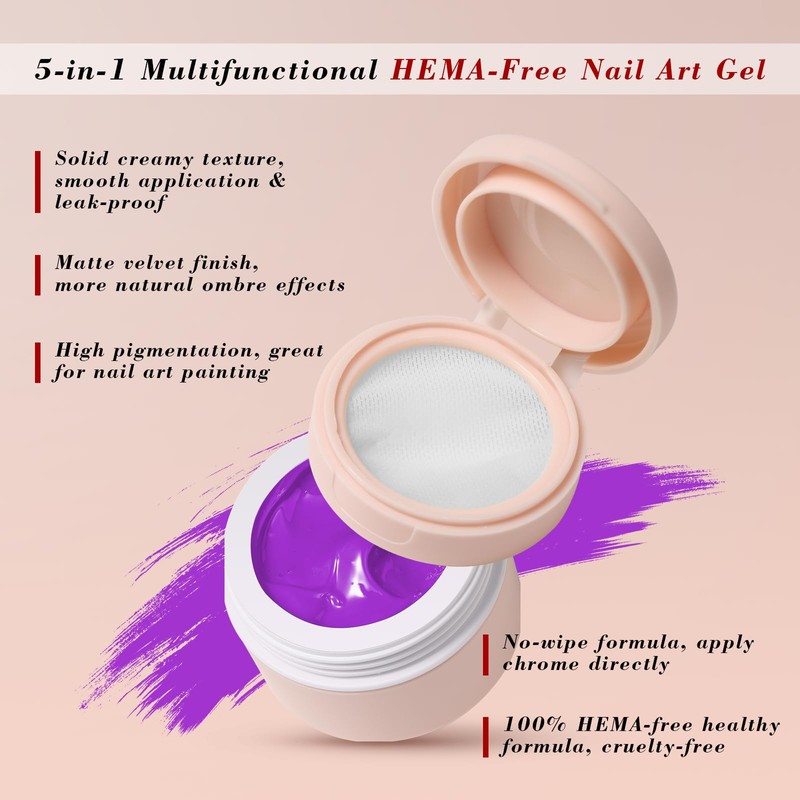 - Versatile Gel Polish: Silky, creamy with high coverage purple color, open the lid directly dip as color gel. Comes with a delicate matte effect, coated with the top gel is a high-gloss effect, you can use nail chrome powder, can be used as a transfer gel