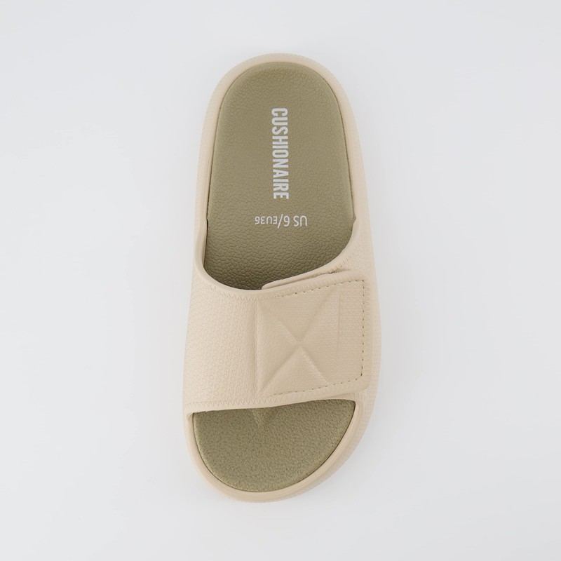 CUSHIONAIRE Women's Biggie recovery slide sandal with +Comfort and adjustable strap, Khaki Combo 9