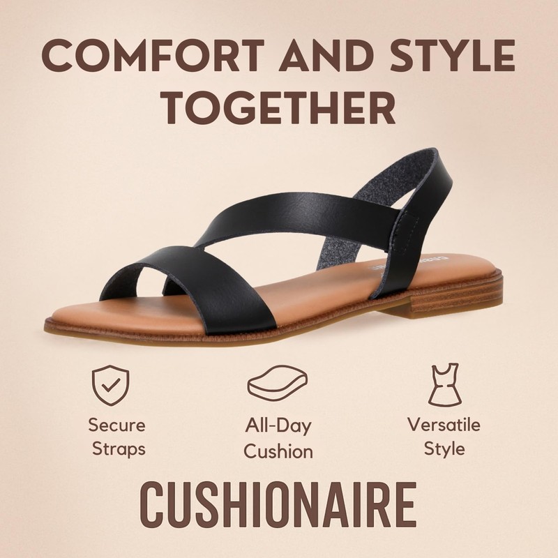 CUSHIONAIRE Women's Lido asym slingback sandal +Memory Foam, BLACK 10