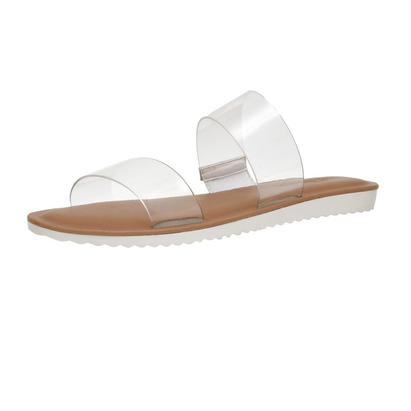 CUSHIONAIRE Women's Vera slide sandal +Memory Foam and Wide Widths Available, Clear 6.5 W