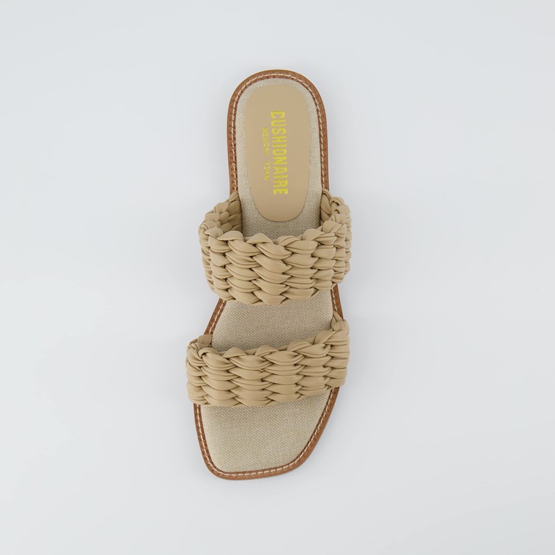CUSHIONAIRE Women's Vibe braided two band sandal +Memory Foam, Wide Widths Available, Wheat 8.5