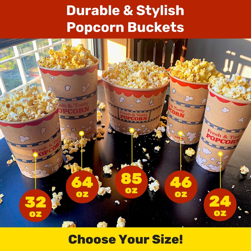 CUSINIUM 32 oz 25-Pack Kraft Popcorn Buckets - Large Popcorn Tubs