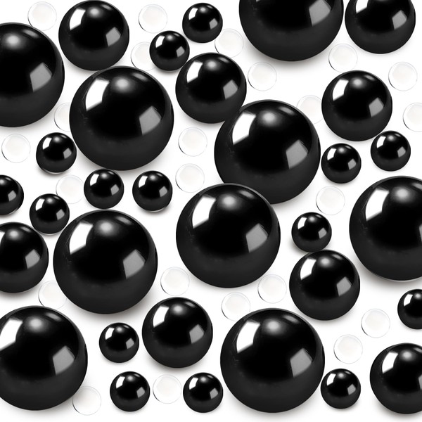 Cusmation 120 PCS 8/14/20mm Floating Beads for Centerpiece, Black Decorative Vase Fillers Pearl with 800 PCS Clear Water Gel, Pearl for Vases, Centerpieces with Wedding Party Decor