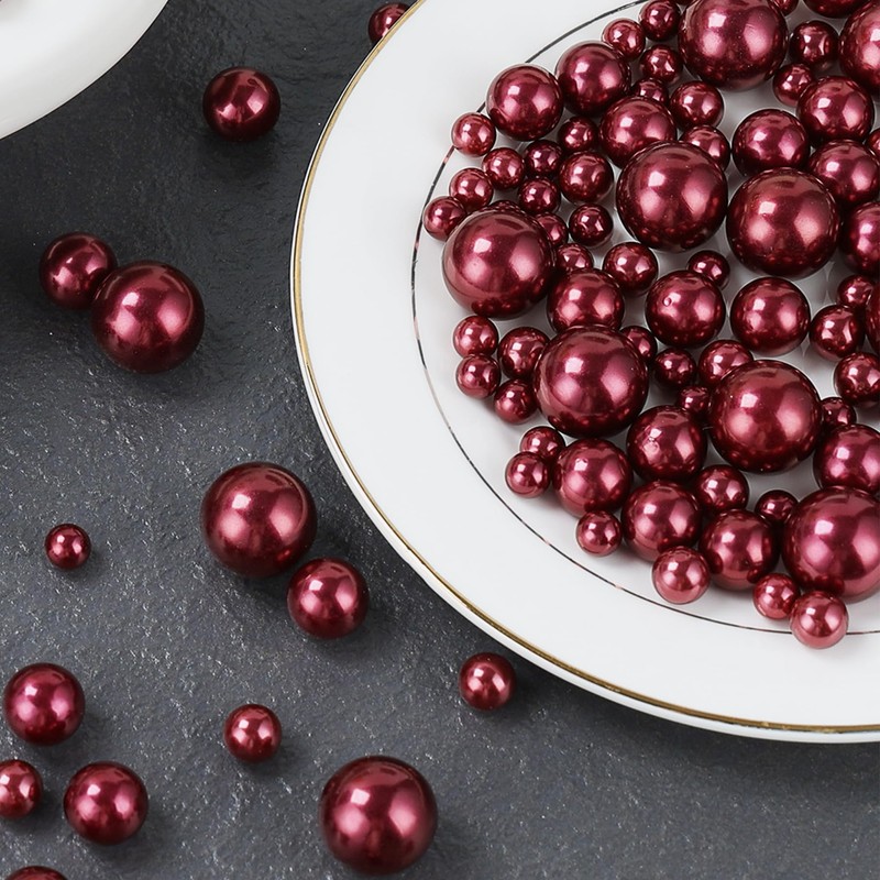 Cusmation 20mm 14mm 10mm 100PCS Wine Red Beads for Centerpiece Vases, No Hole Faux Pearl Beads, Vase Filler Pearls, Floating Candle for Home Wedding Table Decor