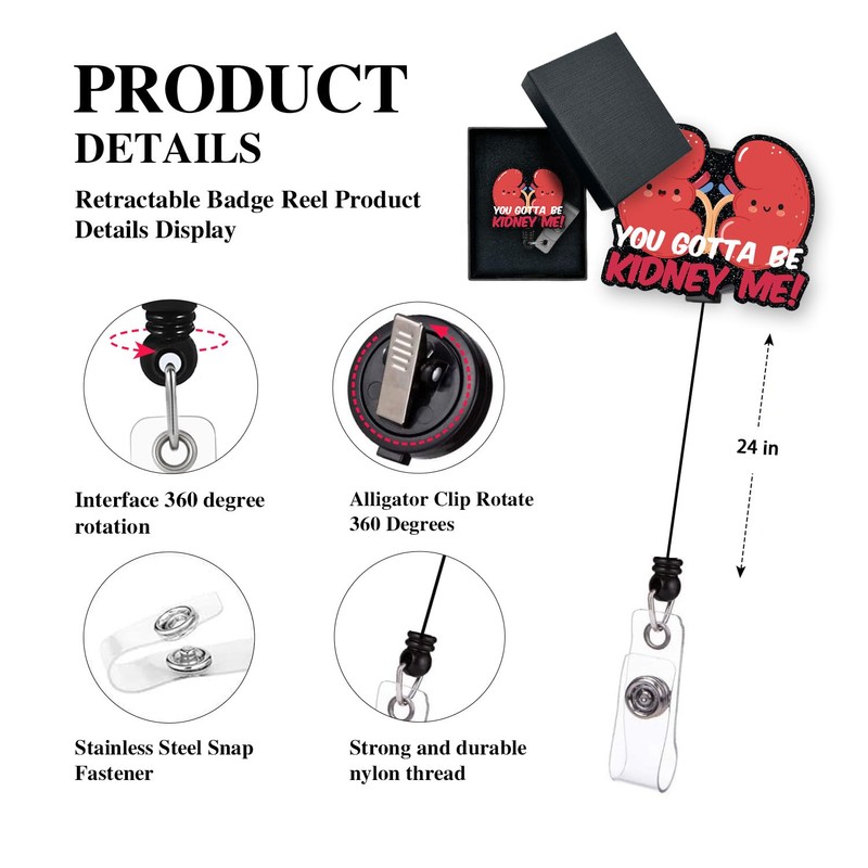 Cusrtyh, You Gotta Be Kidney Me Funny Renal Nurse Retractable Badge Reel with Alligator Clip, Gift for Nephrologist Doctors Nurses Urology Urologist,Black Glitter Badge Reel Gift,YXZ027