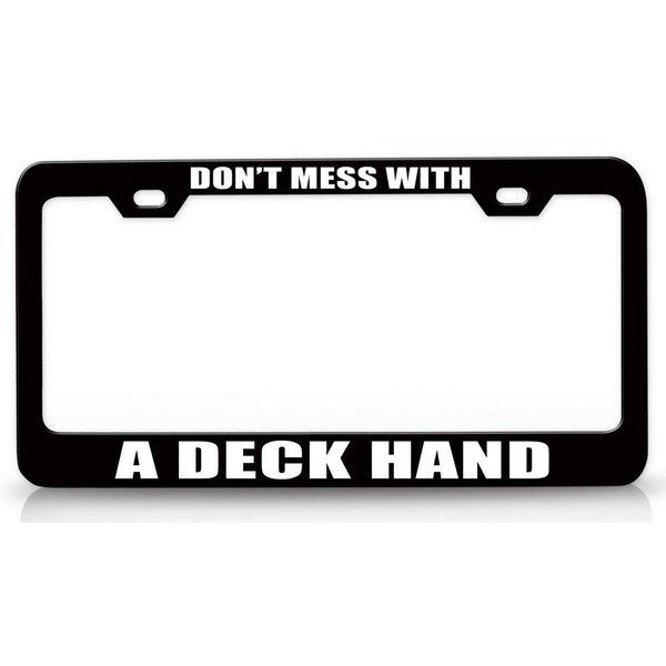 Custom Brother - Don't Mess with A Deck Hand Career Metal Car SUV Truck License Plate Frame Bl j17