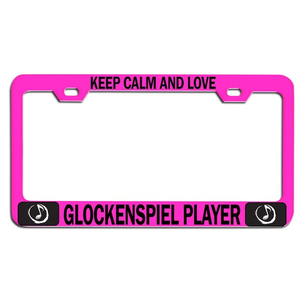 Custom Brother - Keep Calm and Love Glockenspiel Player Pink Steel Auto SUV License Plate Frame License Tag Holder, O96