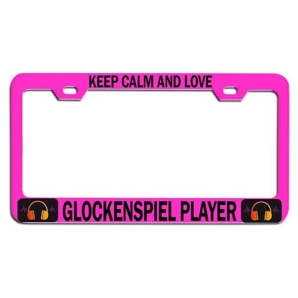 Custom Brother - Keep Calm and Love Glockenspiel Player Pink Steel Auto SUV License Plate Frame License Tag Holder, O97