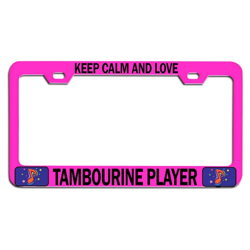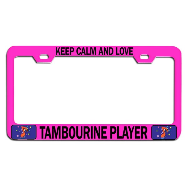 Custom Brother - Keep Calm and Love Tambourine Player Pink Steel Auto SUV License Plate Frame License Tag Holder, C70