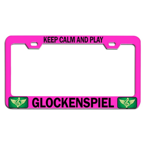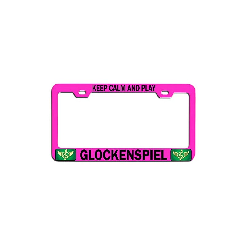 Custom Brother - Keep Calm and Play Glockenspiel Pink Steel Auto SUV License Plate Frame License Tag Holder, R37