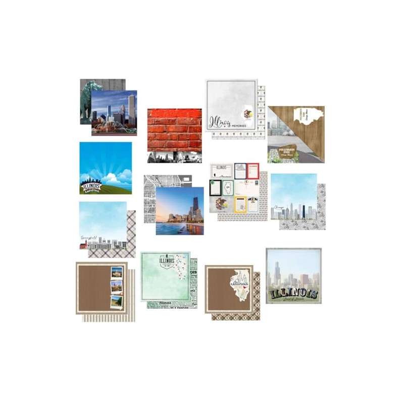 Custom Bundle - 13 Illinois Chicago Springfield Travel Vacation Themed 12" x 12" Scrapbook - Various Brands