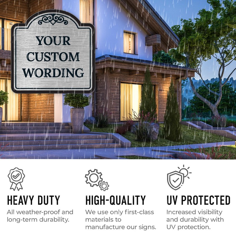 Custom Decorative Sign, Personalized Metal Sign for Business, Driveway, Home, Airbnb, Office Door Plaque, Brushed Nickel Sign, 12x12 Inches, ACM, Fade Resistant, Made in USA by Sigo Signs