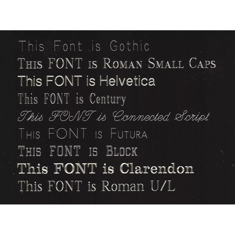 · You have 12 Available Fonts to select from, if you do not leave your font choice with your instructions, Roman Small Caps will be the engraved font.