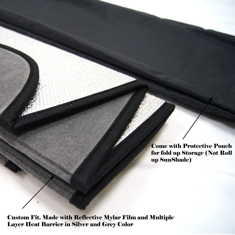- ☑️ 【Blocks Heat & Sun】: Made With Reflective Mylar Film (Silver Front) And Insulating Felt (Gray Back) To Keep Your Parked Car Cooler. Blocks Harmful Uv Rays And Reduces Interior Temperature Significantly, By Up To 30°f. Keeping Your Car Cooler And Protecting Upholstery.