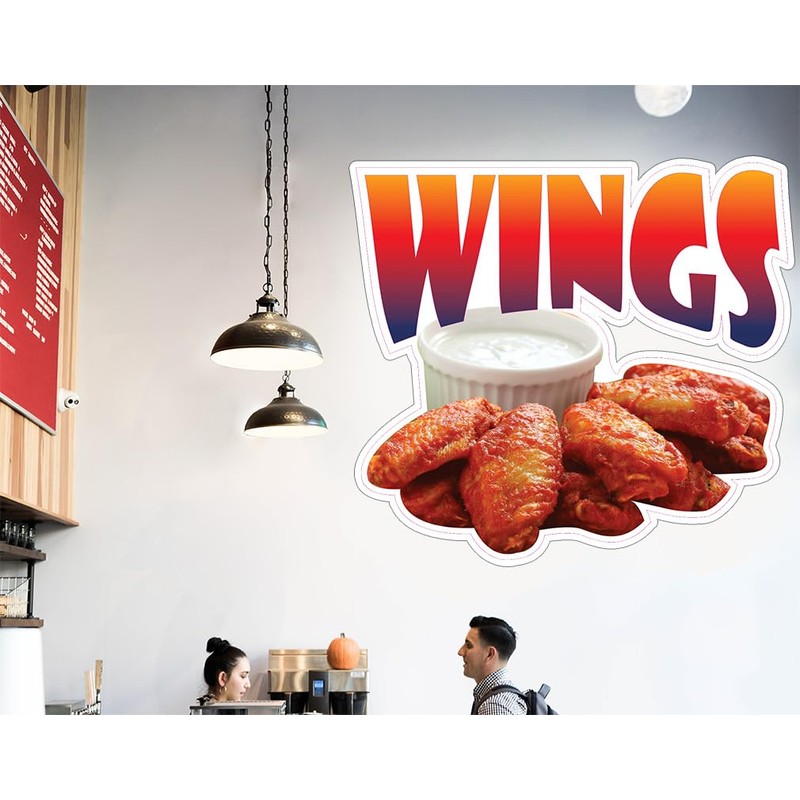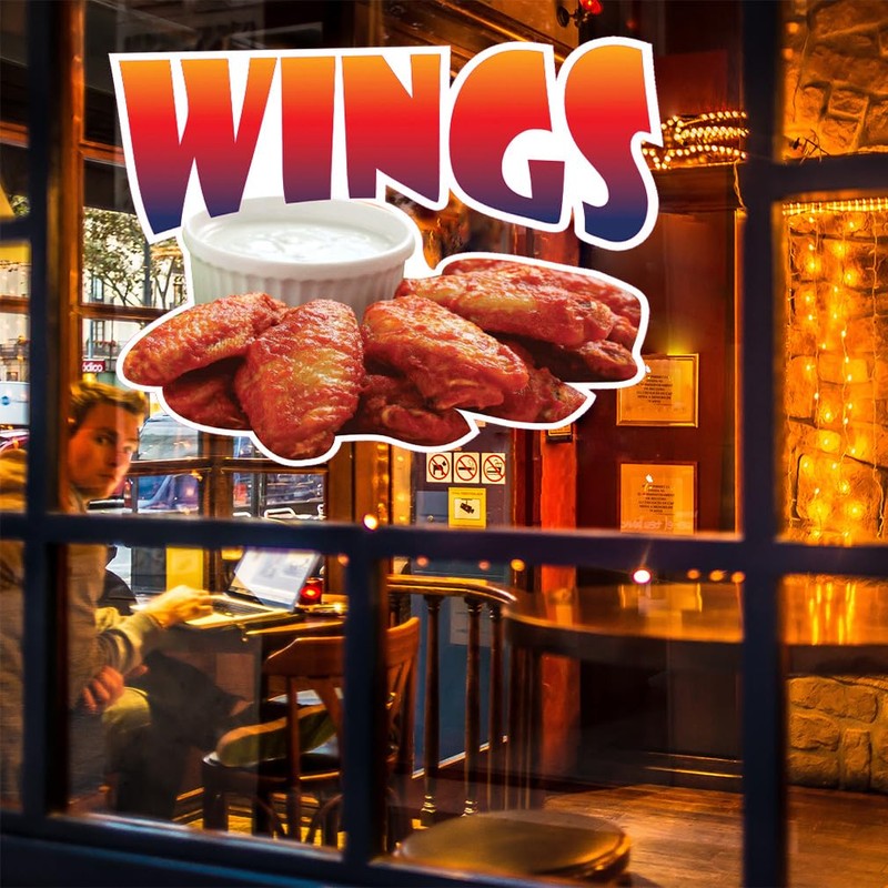 The text reads Chicken Wings. Perfect to use as: Lemon Pepper Chicken Wings and Eye-Catching Chicken Wings Signage food truck signs, Vibrant Chicken Wings Stickers concession stand logo, or Creative Chicken Wings Posters food trailer stickers. Also available in 6 different sizes, you will always find the perfect fit for yourCustom Branding for Chicken Wings Promotions stand!