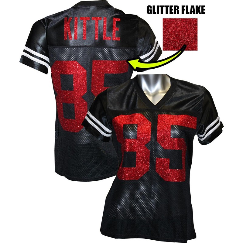 Custom Glitterflake George Kittle Womens Black Mesh Jersey Size X-Large XL