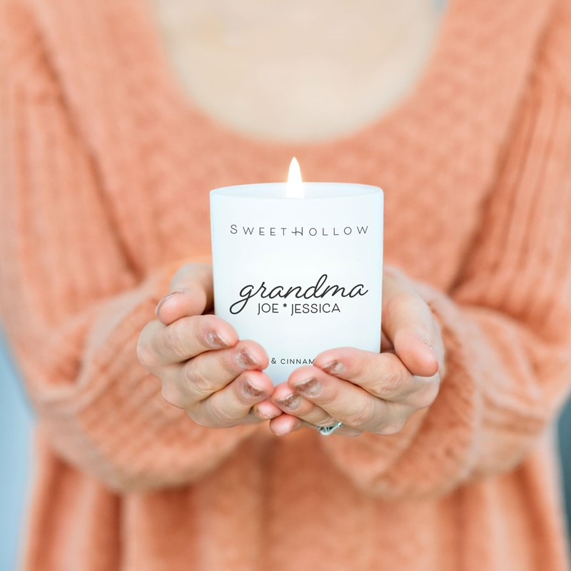 - PERSONALIZED GRANDMA CANDLE WITH GRANDCHILDREN'S NAMES: Simply add the names when you select Customize & Add to Cart.