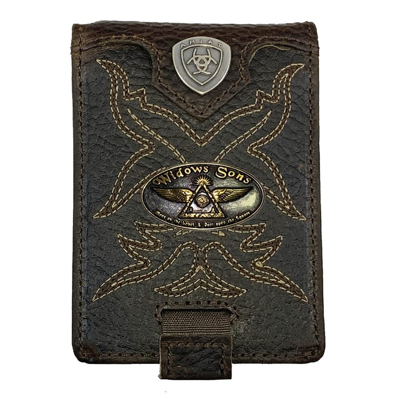 - A Masonic Widows Sons Concho mounted on a Ariat Front Pocket Card Case