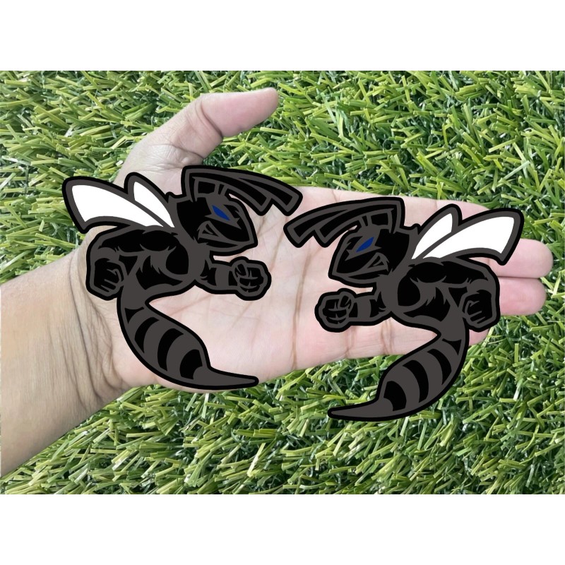 Custom Hornet Badges Emblem BEE (2) Blue Eye White Wings Matte/Black BADGES Aggressive