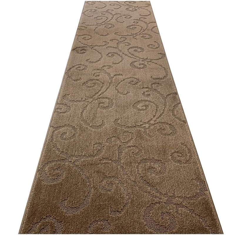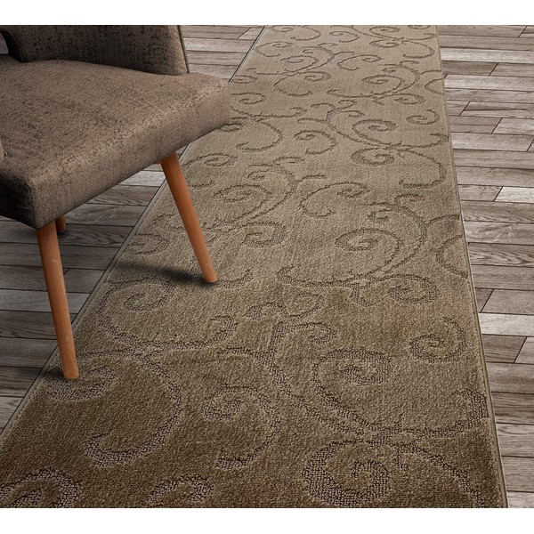 Custom Length Hallway Carpet Runner Rug, Slip Resistant, 26 Inch Wide X Your Choice of Length, Scroll Cappuccino, 26 Inch X 10 Feet, Sold and Priced Per Foot