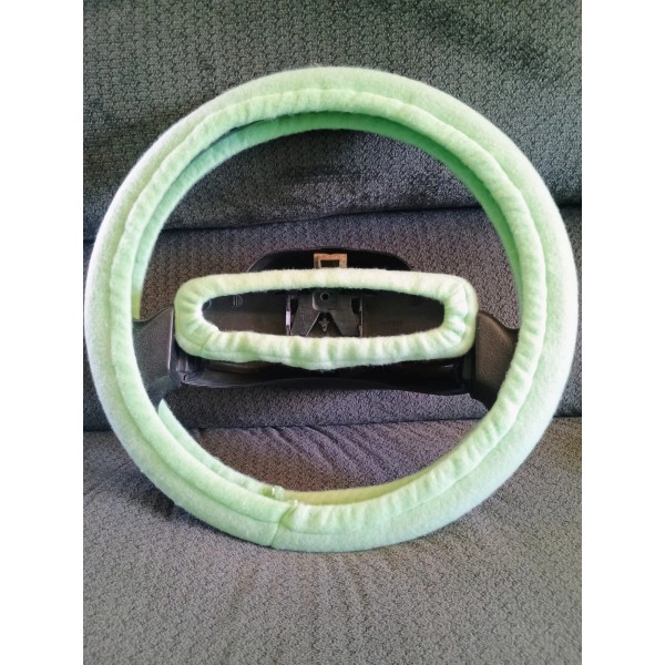 Custom LIME GREEN FLEECE STEERING WHEEL & REAR VIEW MIRROR SET