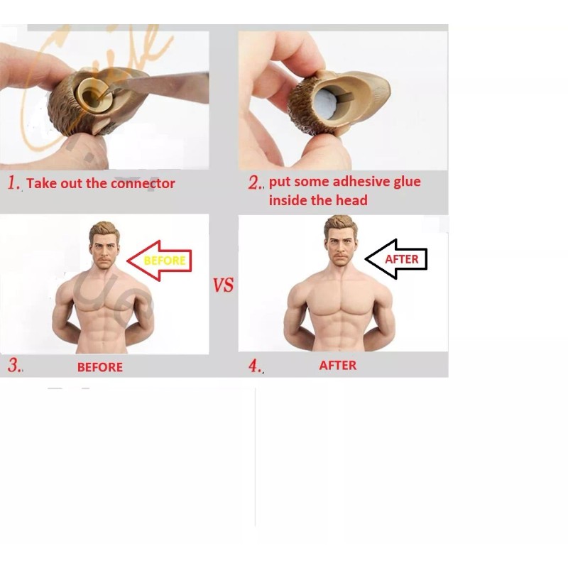 custom made 1/6 Inner Neck Joint Adapter Peg Connector custom male head w/ 1pc Adhesive glue
