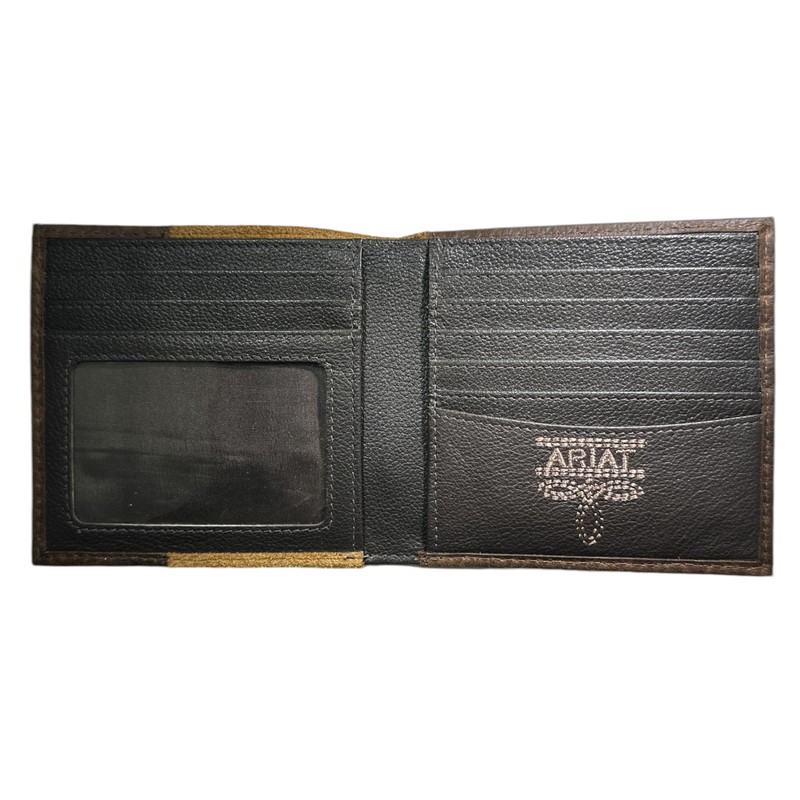 - Classy Gentlemen’s Ariat top grain leather bifold style two-tone Wallet.