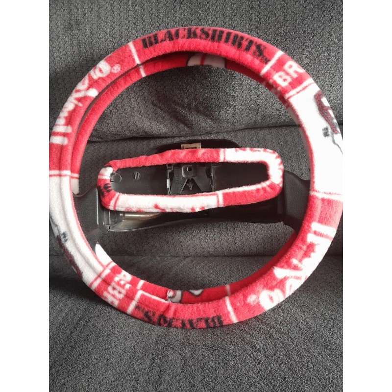 Custom NEBRASKA CORNHUSKERS BLOCKS FLEECE STEERING WHEEL & REAR VIEW MIRROR SET