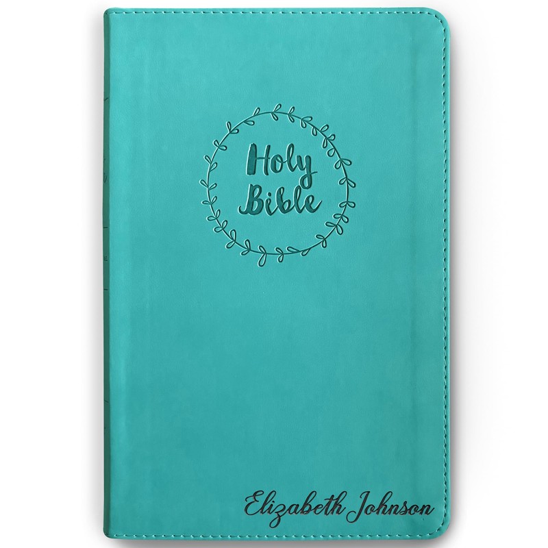 • Personalized New International Version Bible. This custom Bible comes with your name engraved on the cover, making it a special Christian gift. Perfect as a personalized Bible for memorable occasions like baptisms.