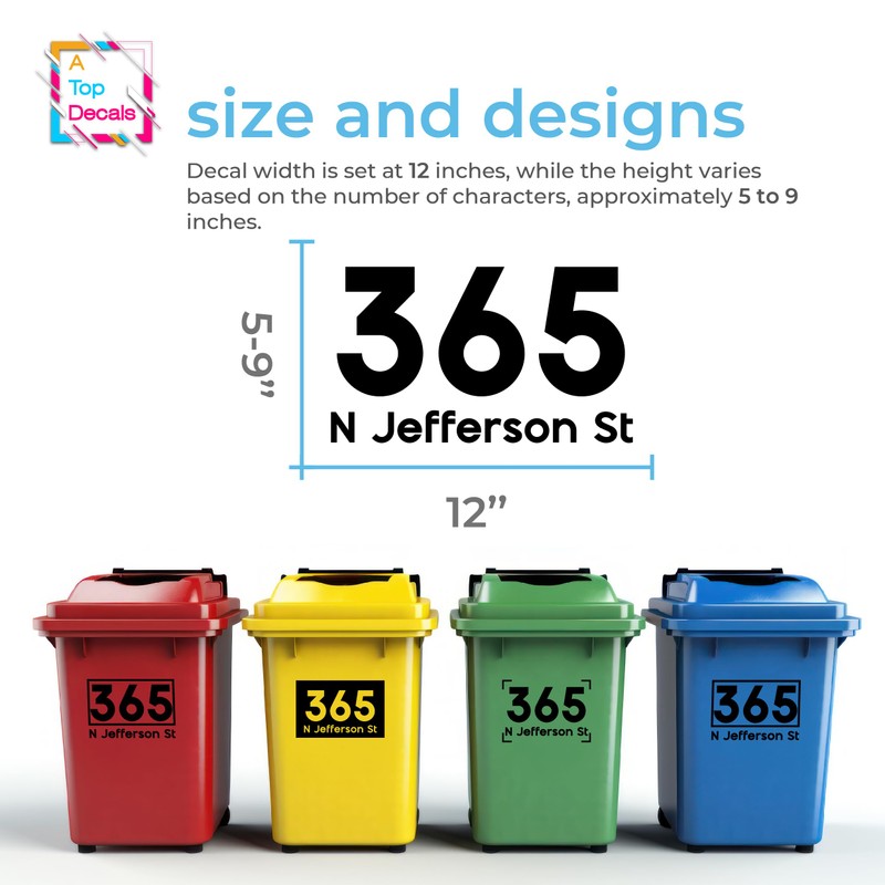 • LONG-LASTING WEATHERPROOF MATERIAL: These garbage can address decals are made from durable, waterproof vinyl that is UV-resistant ensuring they maintain their quality even in harsh weather conditions.