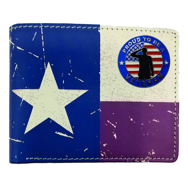 Custom Proud Veteran Distressed Texas Flag Bi-fold Wallet
