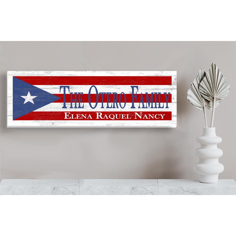 Custom Puerto Rico Flag Sign Personalized Name - Solid Wood - 16.in x 5.5in - For Puerto Rican Family Home, Man Cave, or Wedding Gift