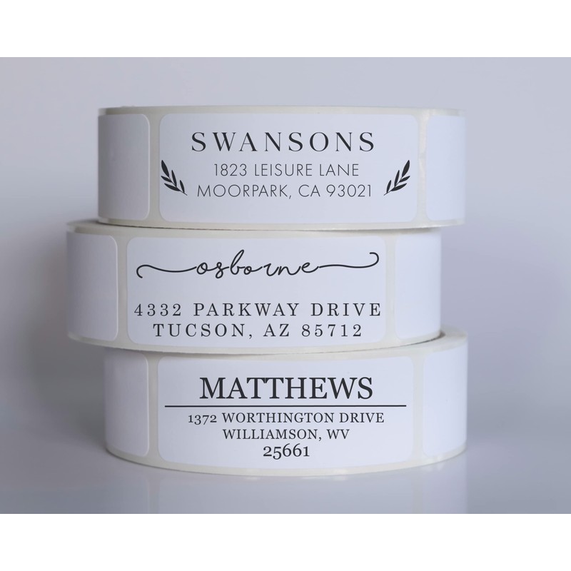 Custom Return Address Labels – Personalized White Stickers (2.5"" x 0.75"") – Rolls of 50 – Matte Finish – Modern & Elegant Design – Self-Adhesive Looking for stylish and practical return address labels? Our personalized address labels come in rolls of 50, printed on premium white matte stickers with a clean, elegant look. Sized perfectly at 2.5 inches by 0.75 inches, these labels are ideal for envelopes, invitations, thank-you notes, holiday cards, and business mail. Customizable with Your Name & Address Choose from 20+ Modern Designs Product Features: Label Size: 2.5"" x 0.75"" – ideal for return addresses and small packaging Design Options: Select from over 20 stylish and professional layouts Premium Print: Clean, crisp text printed exactly as entered Fully Customizable: Change any wording including name, business, or message Perfect For: Mail, invoices, bills, letters, invitations, and more Sold In Rolls: Each roll includes 50 custom printed labels Self-Adhesive: Easy peel-and-stick application Finish: Smooth white matte (non-glossy) surface Designed, printed, and sent domestically How to Order: Click “Customize Now” Choose your design style Select the quantity Enter your name, address, or custom message Add to Cart Please double-check spelling and capitalization. Labels will be printed exactly as entered. Longer names or addresses may result in smaller text or layout adjustments to fit within the label size.