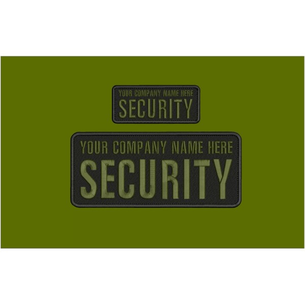 CUSTOM SECURITY EMBROIDERY PATCH 4X10 AND 2X5 HOOK ON BACK BLK/OD GREEN