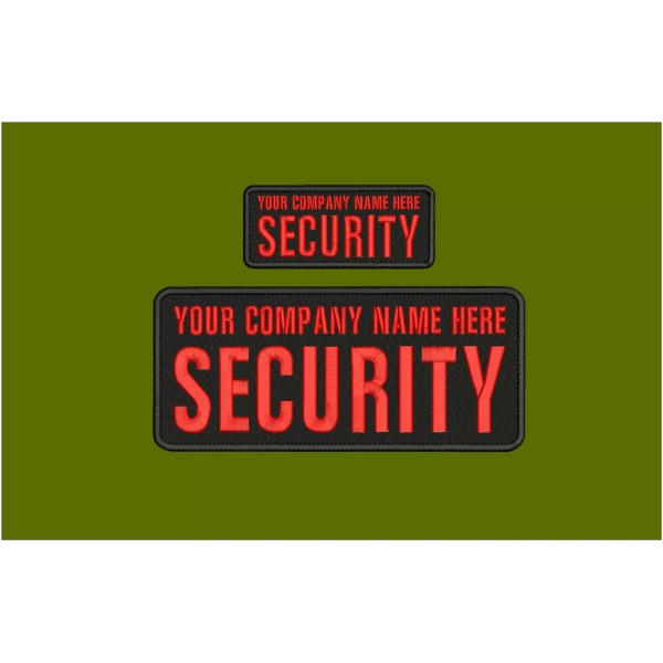 CUSTOM SECURITY EMBROIDERY PATCH 4X10 AND 2X5 HOOK ON BACK BLK/RED