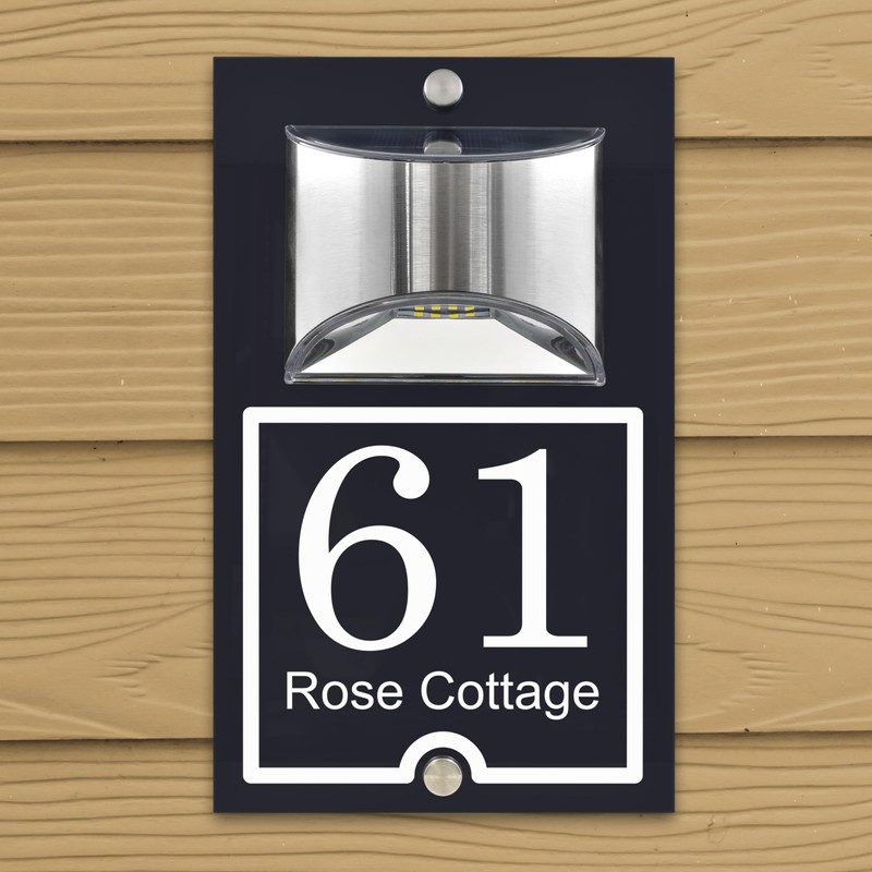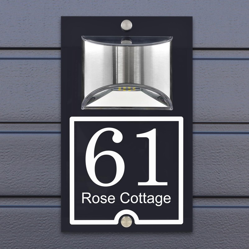 - SOLAR ILLUMINATION: Our Anthracite House Number Sign now includes an solar light, ensuring your address remains visible day and night. The built-in solar panel charges during the day and automatically illuminates your sign at dusk.