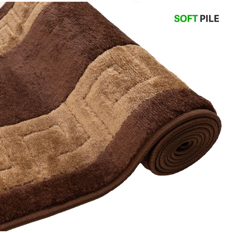 Custom Size Anti Slip Medium Profile Soft Pile Greek Key Meander Brown Design Design Runner Rug Carpet (Beige-Brown, 26" x 7')