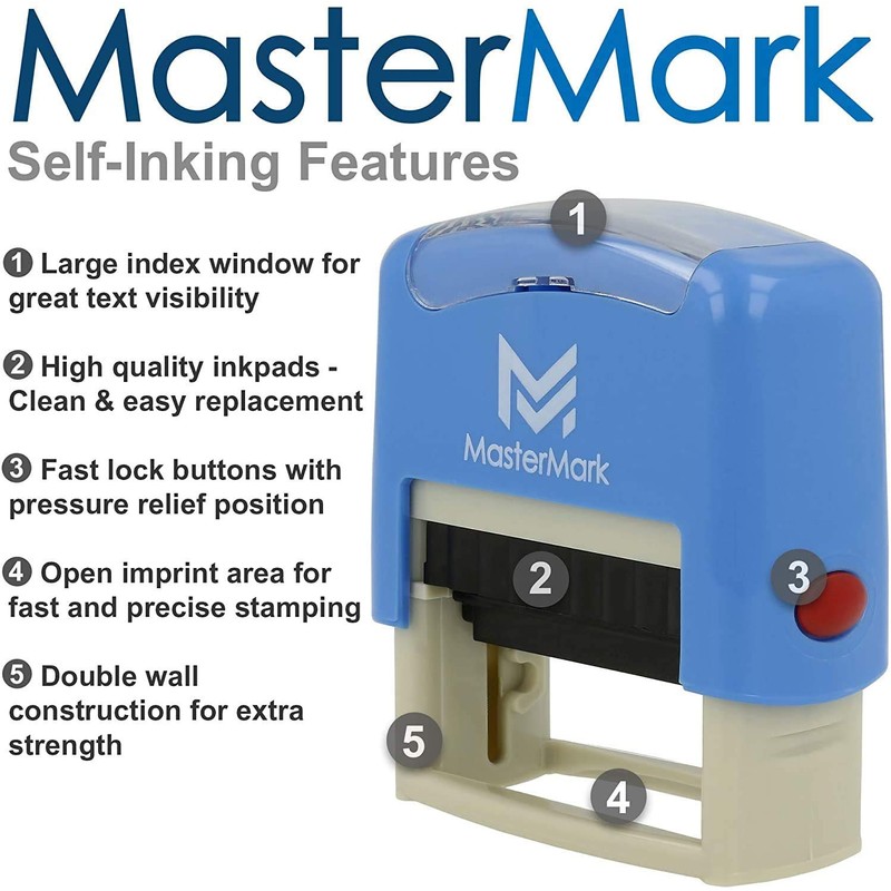 • MasterMark quality brand name stamp - Self-inking design allows for quick, repetitive stamping.
