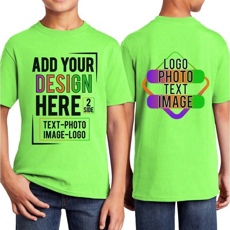 Custom T Shirt Youth Girl Boy Add Your Text Image Photo 2 Sided Personalized Kids T Shirt Neon Green