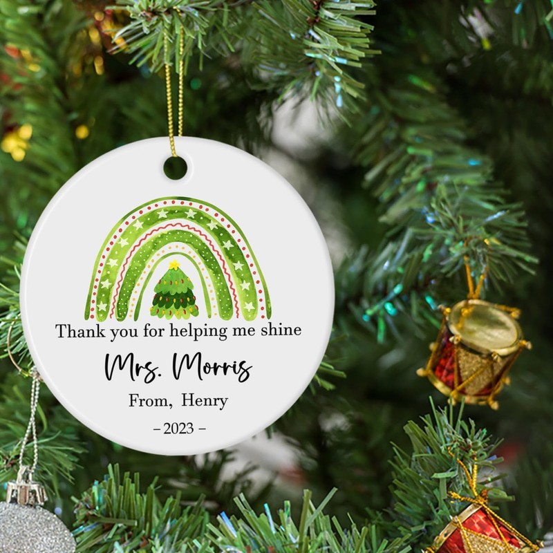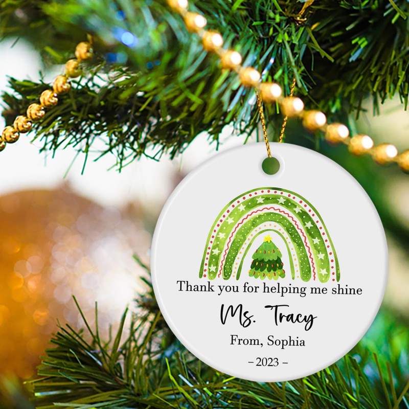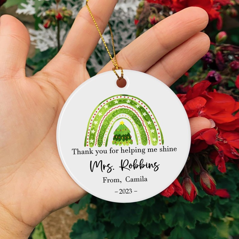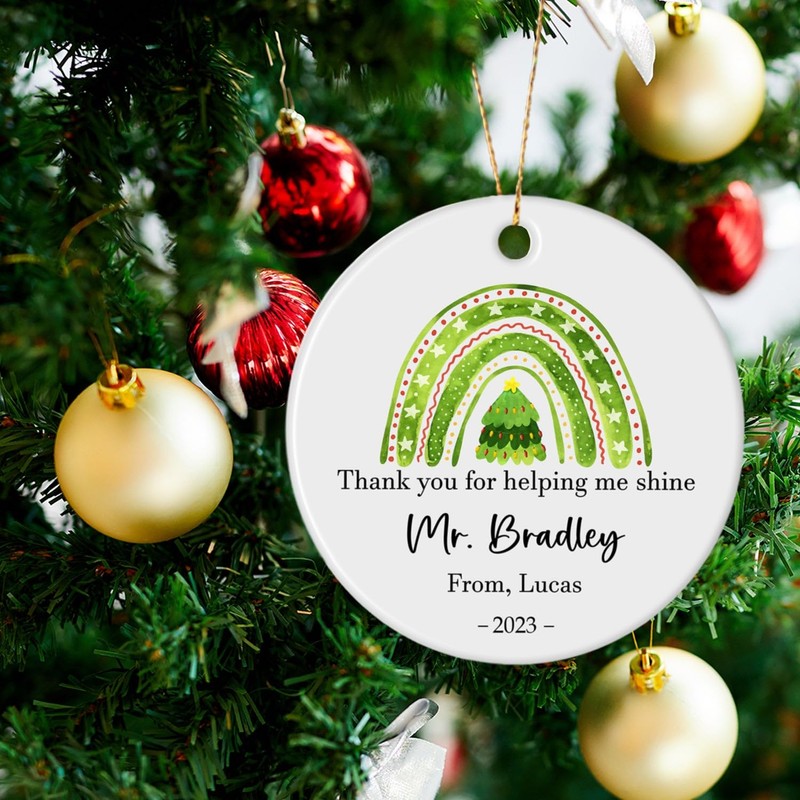 ☛ Custom Teacher Thank You Xmas Ornament Gifts, Rainbow Teacher Ornament, Best Teacher Christmas Ornament 2025, Personalized Teacher Christmas Ceramic Ornament, Gift For End Of The Year Christmas