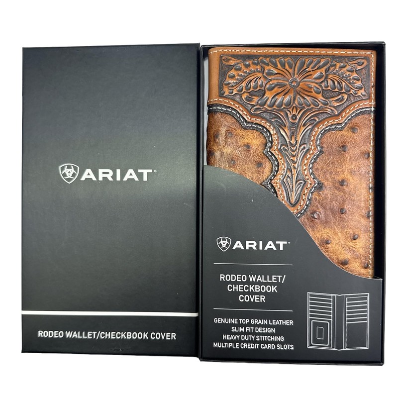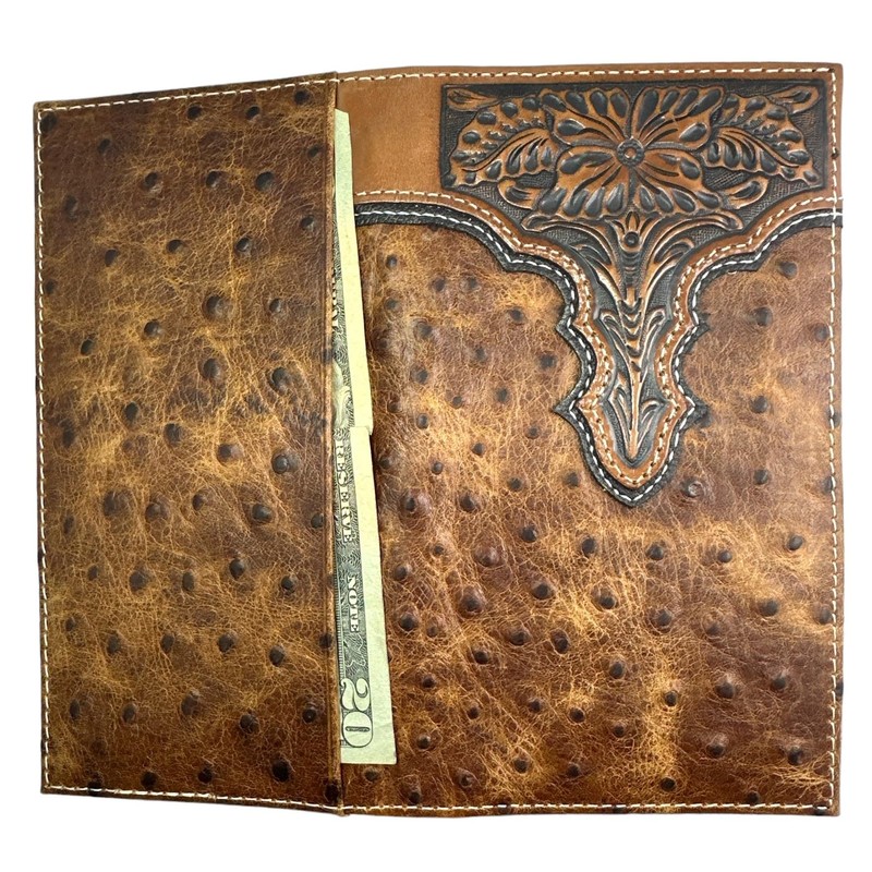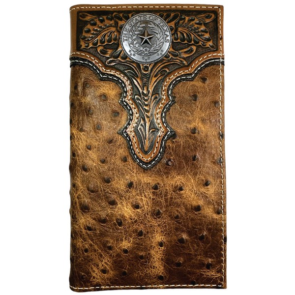 Custom Texas Seal ARIAT Tooled Ostrich Long Rodeo Leather Wallet