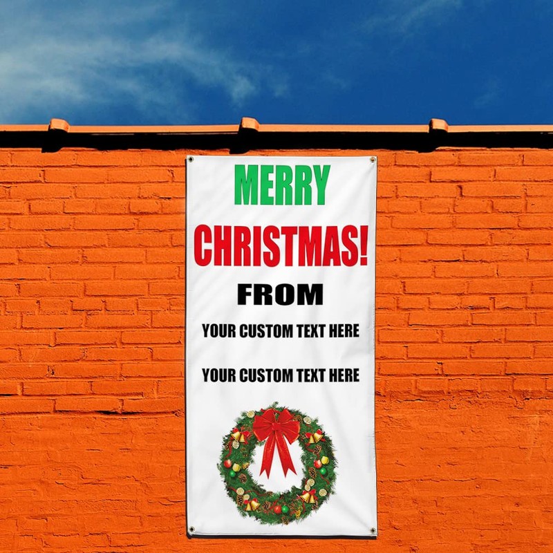Custom Vertical Vinyl Banner Multiple Sizes Merry Christmas! Custom Family Name Holidays and Occasions Outdoor Weatherproof Industrial Yard Signs 4 Grommets 30x12Inches